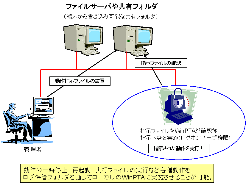 Users\ 以下のフォルダを用いれば基本的に「誰でもアクセスできる」ので、逆に非管理者が管理者に対して運用することも可能です。