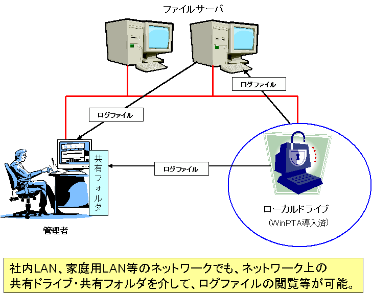 WinPTAは、優れた監視機能を持っています。 ・キー入力操作、マウス操作の記録 ・IEやNNで訪れたURLの記録 ・第三者からWinPTAを隠して自動実行・監視 ・任意のプログラムをリモートからリアルタイムに実行(※1) WinPTAは、セキュアな運用・管理を実現します。 ・実行の偽装機能(専用アプリ付属) ・実行ファイルの偽装機能(専用アプリ付属) ・ログの強力な暗号化機能(VNCrypt) ・ログ作成日時の偽装機能 ・万一の悪用・盗用・流用に対抗する安全機能(専用アプリ付属) WinPTAは、様々な事業所・企業に導入されています。 ・医療法人、株式会社のシステム担当部門など、各種事業所・企業等に導入された実績があります ・ユーザ(個人を含む)は、既に100を超えております |