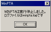 Pauseキーを押しながらCtrlキーを押すか、3分経つと、WinPTAは下のようなメッセージを表示して停止します。