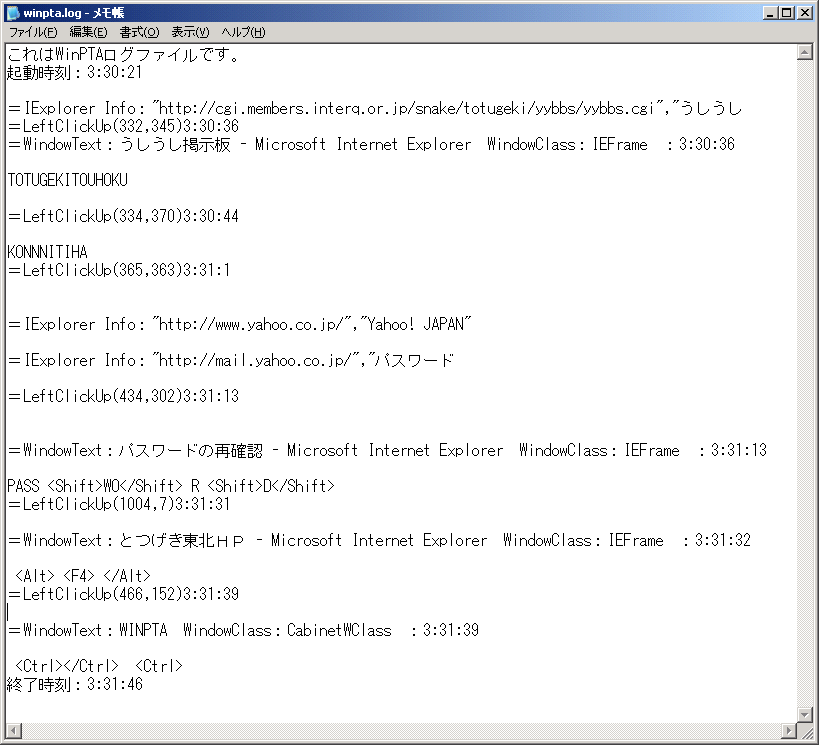 つまり、WinPTAを起動しなおすとログファイルは自然に消えてしまいます。