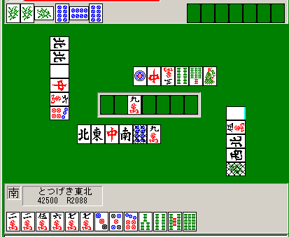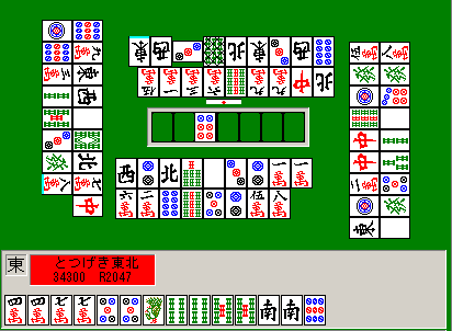 しかし、もしここで東西と切っているのではなく6ソウ4マンなどと切ってあったら、もうテンパイだと考えてもう少し安全に打ったと思われる。