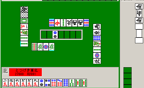 親の仕掛けでこれ。まだ手出しで字牌や端牌を出している時だ。