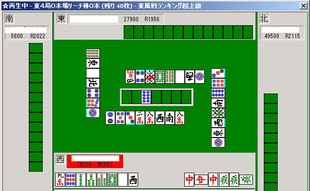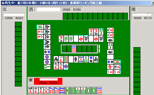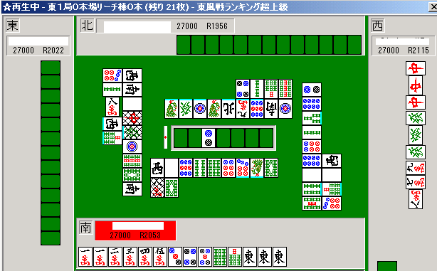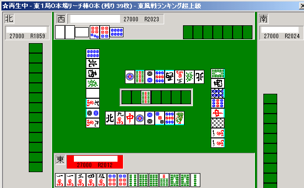 東風戦の順位戦で、チップやオカ、赤ドラは存在しない。主に東風荘の超ランでの実際の対局から無作為に取り出した局面である。