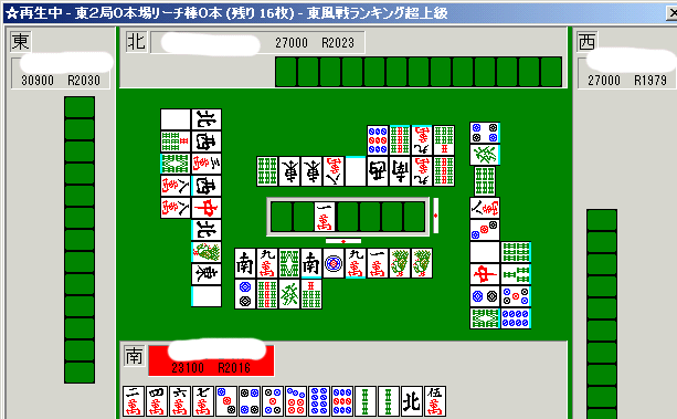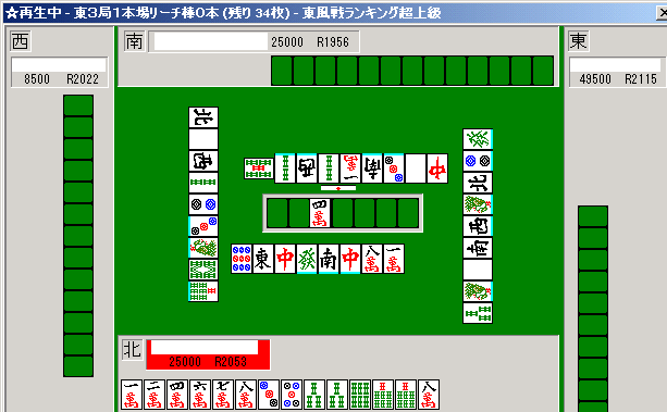 なお打牌の下に水色の線がついているものはツモ切りである(空切りした場合はつかない)。